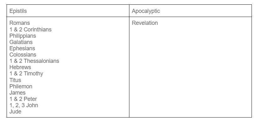Epistils: After the ascension of Jesus, his followers started spreading the good news across the known world. Christianity exploded. Churches started popping up in different places. Since following Jesus was a new way of life for most people at the time… they needed some guidance. The Epistles are letters written by Jesus’ followers to the different churches and people groups. The apostle Paul wrote a good portion of them. They contain guidance on how to live out faith in Christ.
